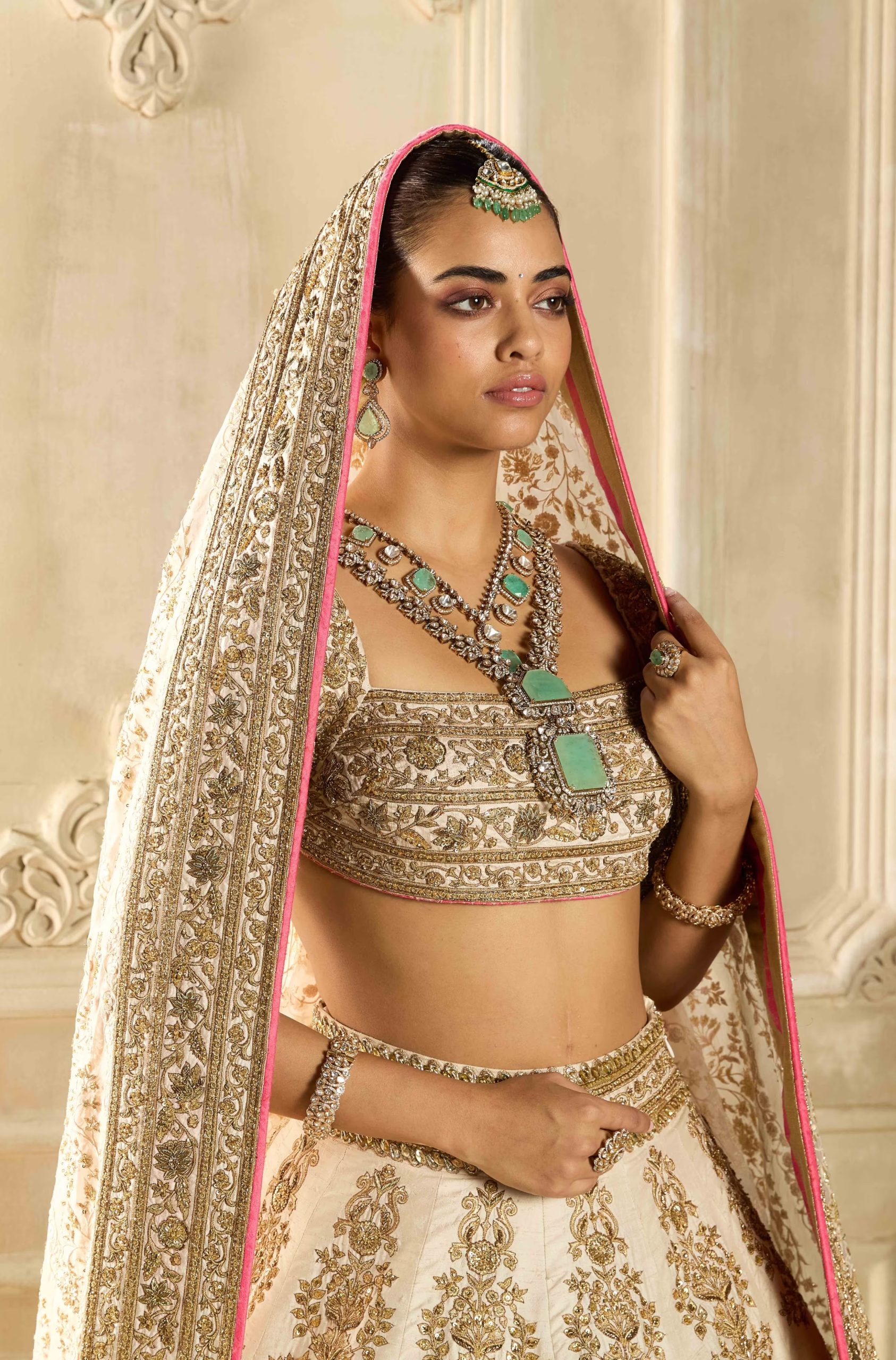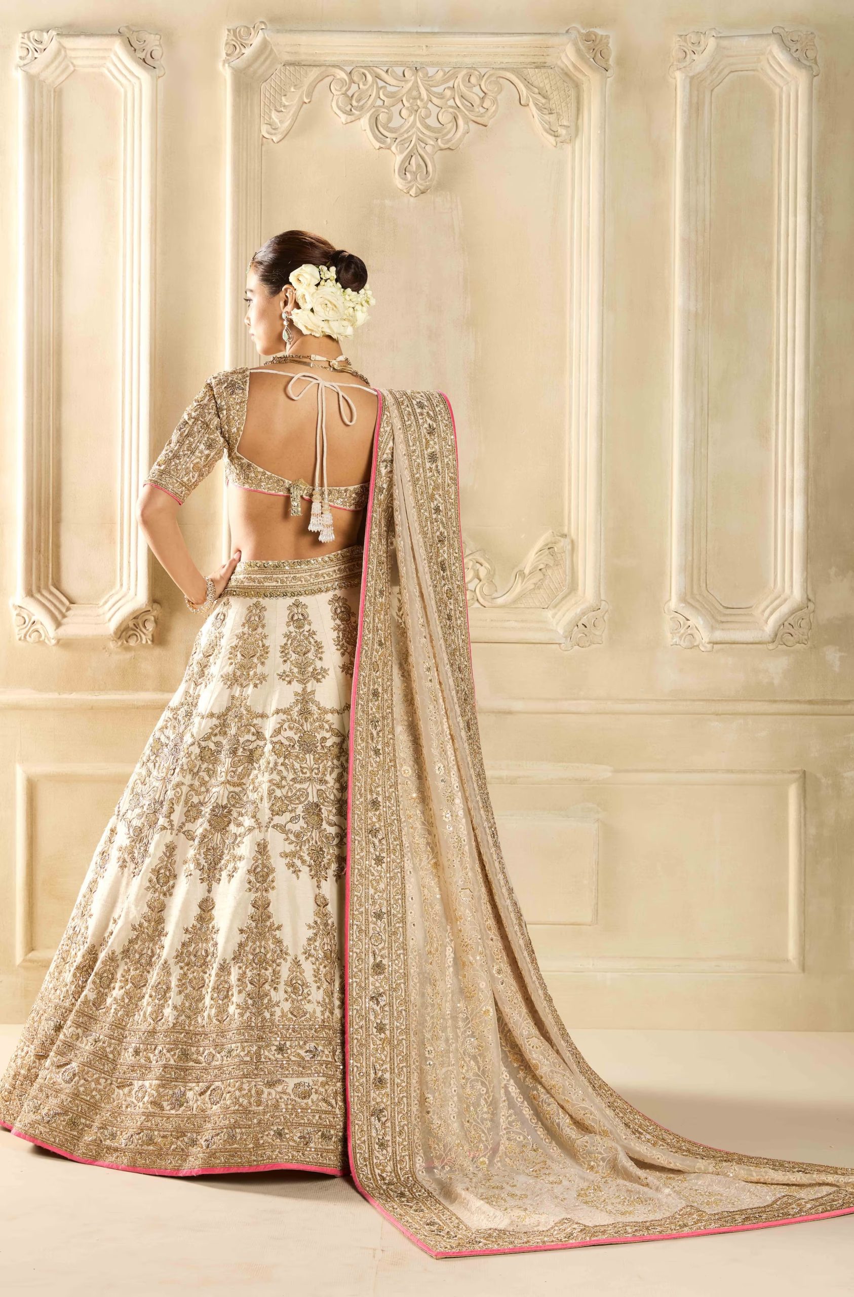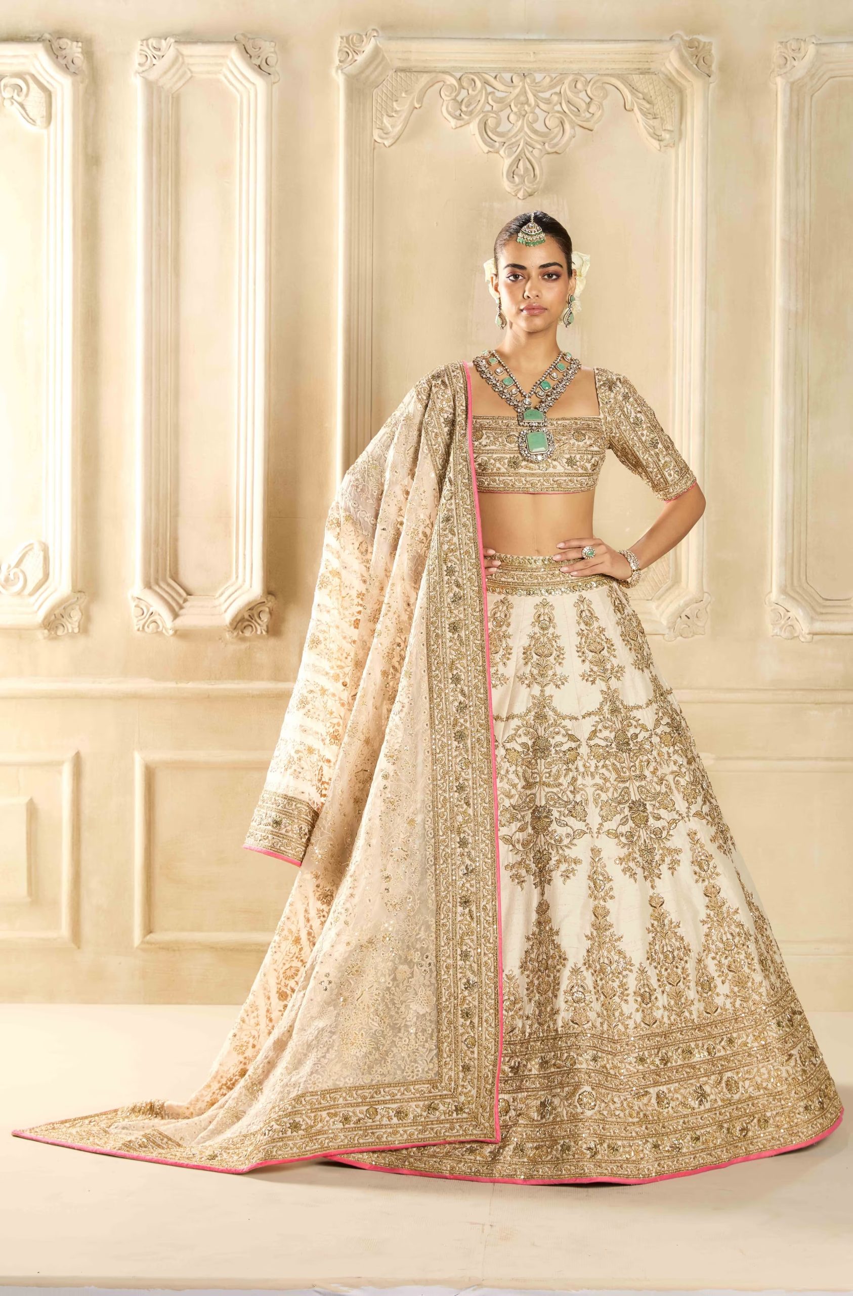 Ivory Silk Lehenga with Gold Embroidery – Zehave Signature Bridal